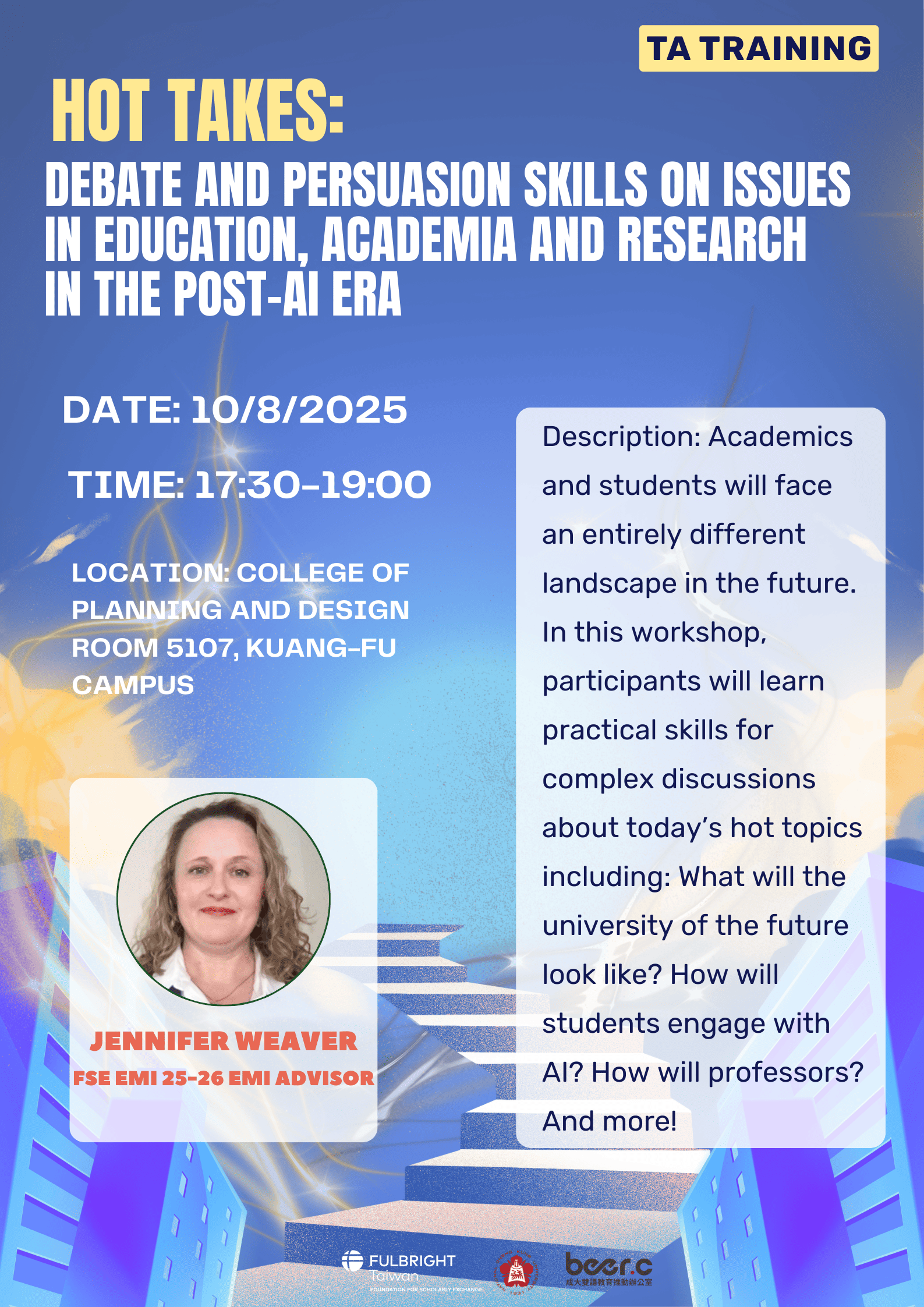 114-1學期EMI TA培訓資訊:Hot Takes: Debate and Persuasion Skills on Issues in Education, Academia and Research in the Post-AI Era