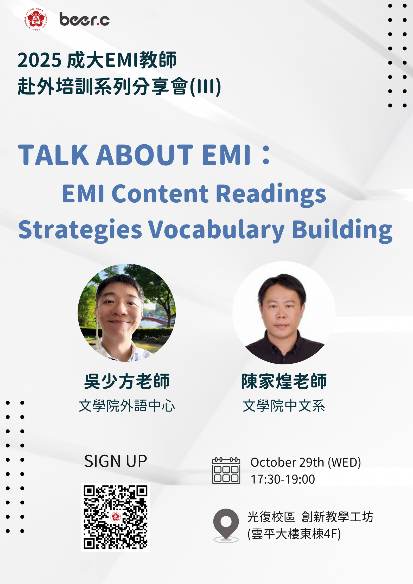 10/29(三) 17:30-19:00 EMI Content Readings Strategies Vocabulary Building