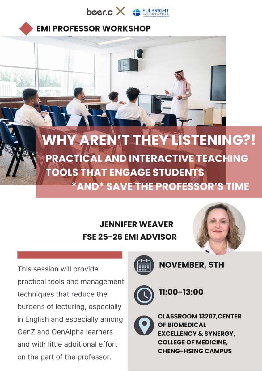 活動簡介: This session will provide practical tools and management techniques that reduce the burdens of lecturing, especially in English and especially among GenZ and GenAlpha learns and with little additional effort on the part of the professor.
